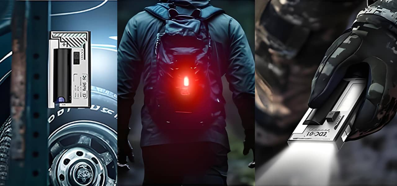 Model 2 : Side light low - High - Red on - Red and blue flashing - Double click for purple light